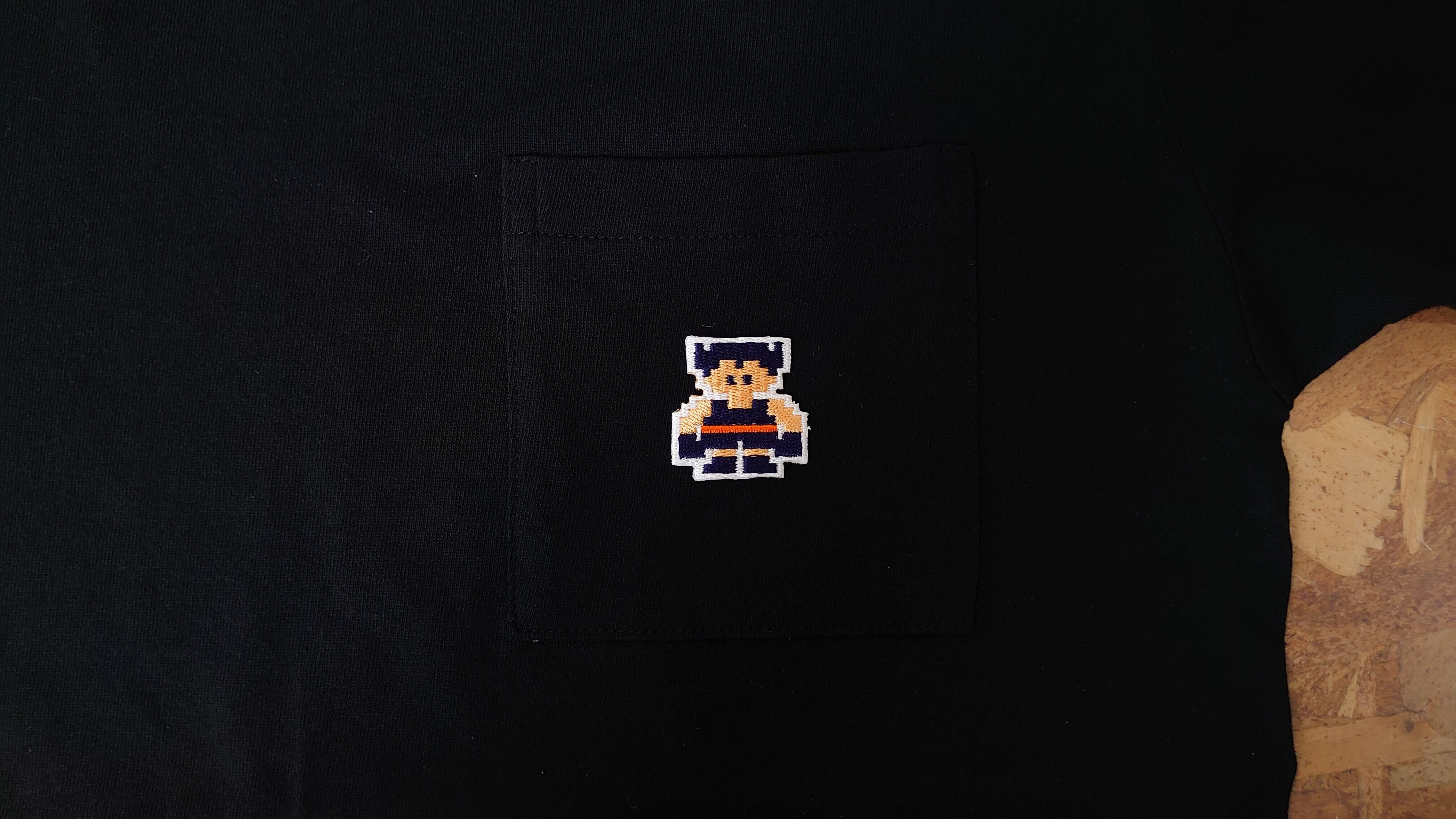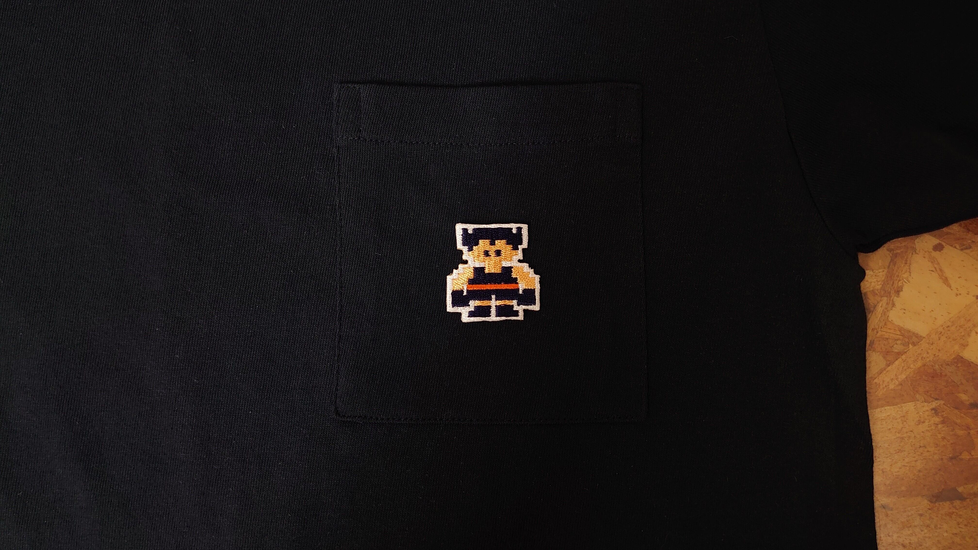 胸に各キャラのワンポイントを配置したポケット付きTシャツ。胸のワンポイントは質感のあるワッペン。